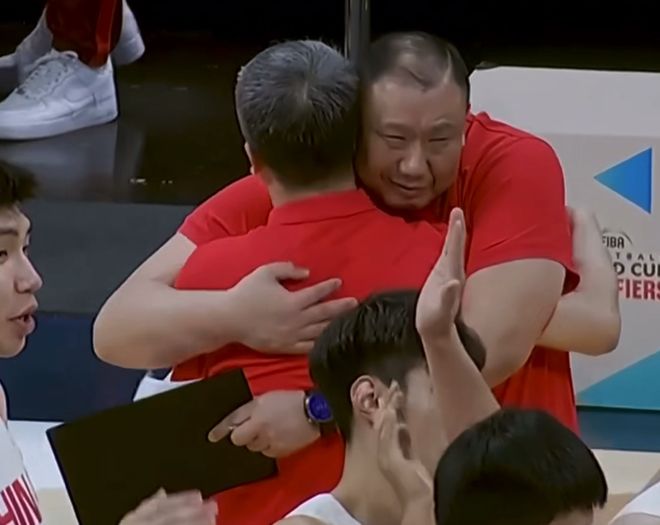 中国男篮险胜中国台北!郭士强抱住陈盈骏与王晗,全员呐喊庆祝!