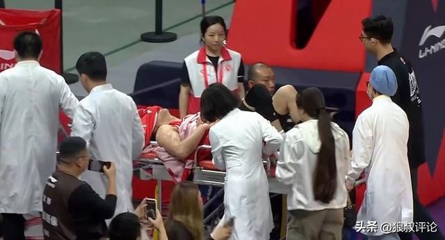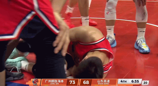 第四节,郭艾伦强突内线造成谢智杰的犯规,但在落地的时候,抱着膝盖痛苦倒地不起,队友和相关工作人员第一时间询问郭艾伦的情况,但后者依旧在地板上无法站起来,最终,担架进场,郭艾伦被推着离开球场。