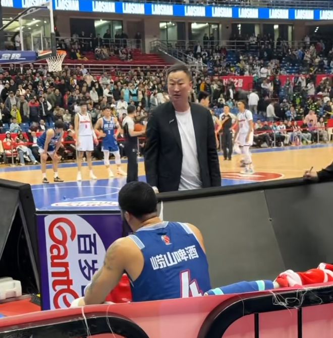 值得一提的是,在加时赛最后的时候,青岛队替补席,还发生了一件十分尴尬事情,青岛队主教练刘维伟与外援韦瑟斯庞两人发生了十分激烈的争吵,只见,韦瑟斯庞被替换下场,有点生气,向刘维伟抱怨了一下。