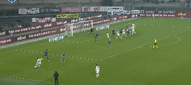 古铁雷斯头球攻门,皮球偏出球门