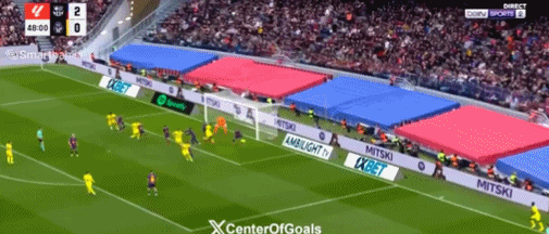 第49分钟,尼古拉-佩佩角球传中,巴萨后防线一片混乱,帕普-盖伊门前抽射建功,比利亚雷亚尔扳回一城,1-2!