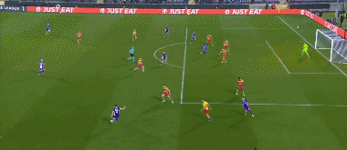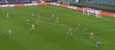 第45+3分钟,马祖雷克兜射,皮球折射入网,佛罗伦萨0-2雅盖隆
