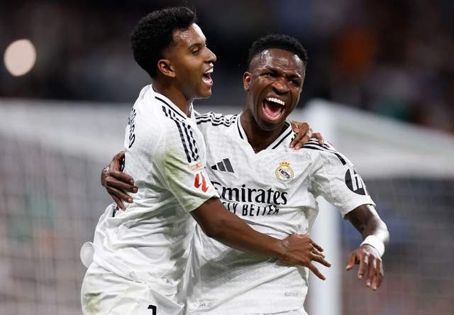 皇马采用非常规的锋线配置,维尼修斯踢左边锋,姆巴佩中锋,中场则是琼阿梅尼、卡马文加、巴尔韦德、居莱尔4人。巴尔韦德居右,与右后卫阿诺德联手承担右路的攻防责任。原本的右边锋罗德里戈,沦为“牺牲品”。