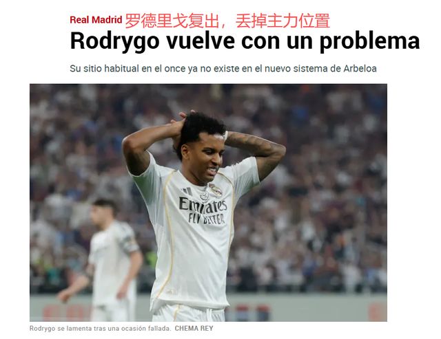 下周一的西甲第26轮,皇马主场迎战赫塔菲,罗德里戈将伤愈归队。《马卡报》表示,罗德里戈回归,他会发现自己不再是主力。