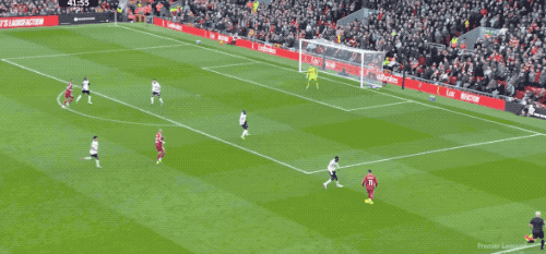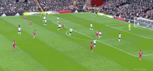 第65分钟,利物浦打出快速反击,索博斯洛伊将球分到右路,萨拉赫标志性地横向摆脱,起脚射门,放了高射炮。
