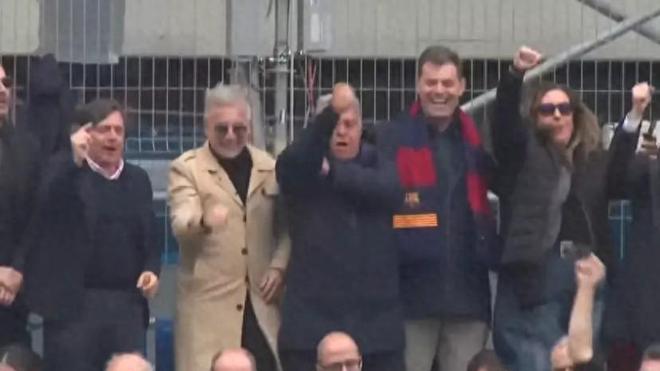 巴萨大胜!拉波尔塔看台高歌“不跳就是皇马人”,一个手势引热议
