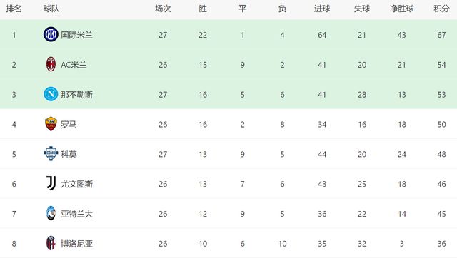 2-0!意甲争冠无悬念:国米15轮14胜+领先13分,AC米兰翻盘无望