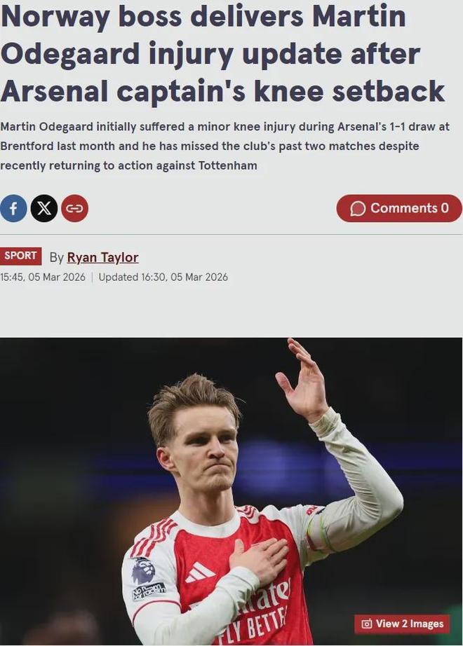 挪威主帅索尔巴肯近日表示,厄德高的伤势“并不严重”,尽管阿森纳队长最近已经缺席了几场比赛。