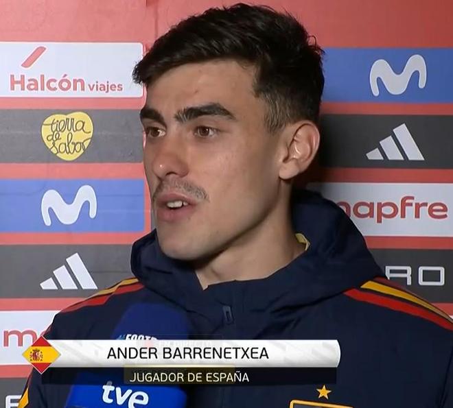 在西班牙主场0-0战平埃及的热身赛中,皇家社会前锋巴雷内切亚迎来了国家队首秀,赛后他接受了TVE的采访。