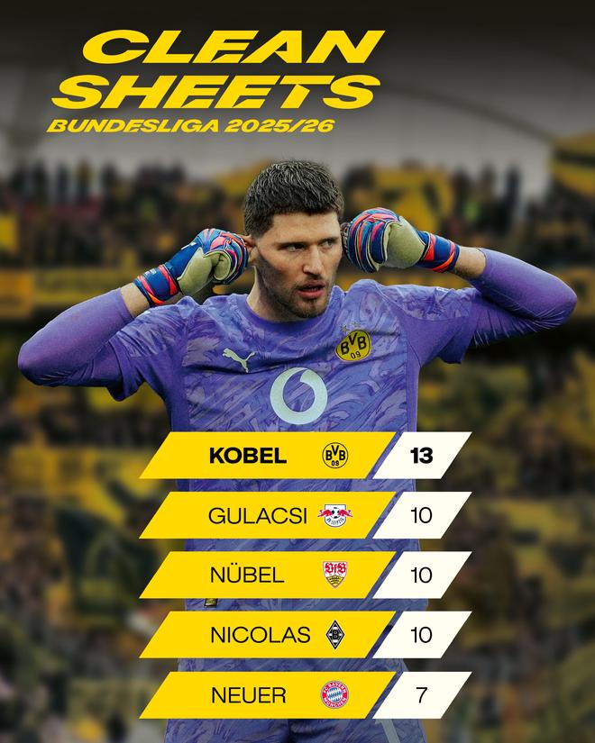 北京时间4月6日,多特官方发布了本赛季德甲门将零封榜单,其中多特门将科贝尔排名第一。