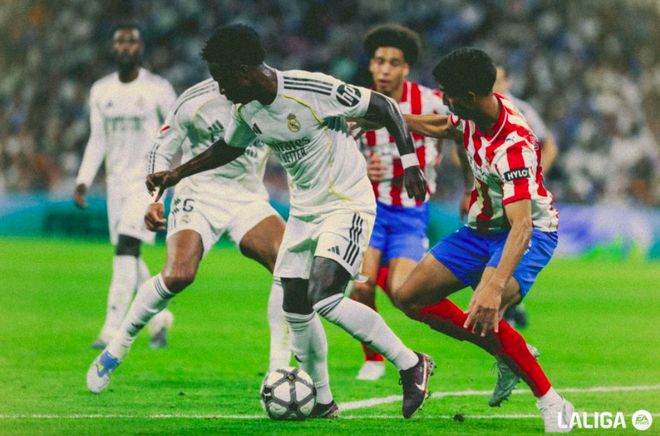 第55分钟,接到贝林厄姆的传球,维尼修斯选择打近角,加扎尼加迅速倒地将球没收。